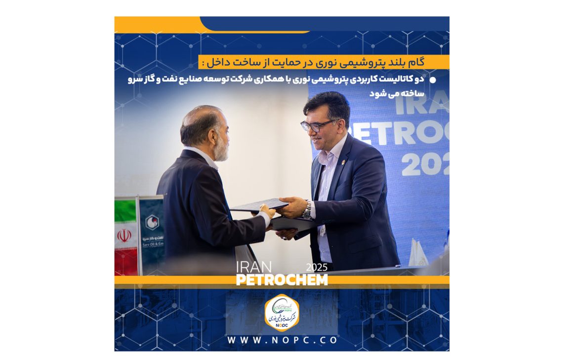 به گزارش برند، مسئولیت اجتماعی و روابط عمومی شرکت پتروشیمی نوری، طی مراسمی که به همت صنایع پتروشیمی خلیج فارس و در حاشیه نمایشگاه ایران پتروکم برگزار شد قرارداد همکاری ساخت دو نوع کاتالیست کاربردی پتروشیمی نوری، توسط سید عبدالمجید خاکسار مدیر ارشد این مجتمع بزرگ آروماتیکی و حجت نظری مدیرعامل شرکت توسعه صنایع نفت و گاز سرو امضا گردید.