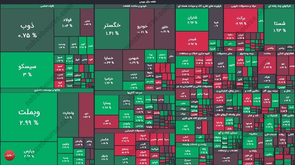 شاخص کل با رشد ۰.۳ درصدی ( ۹۳۴۴ واحدی) به محدوده ۲.۸۶۶.۶۵۳ واحد رسید که تأثیر گذارترین نمادها در شاخص کل فولاد مبارکه، وبملت، تاپیکو و شبندر بودند.