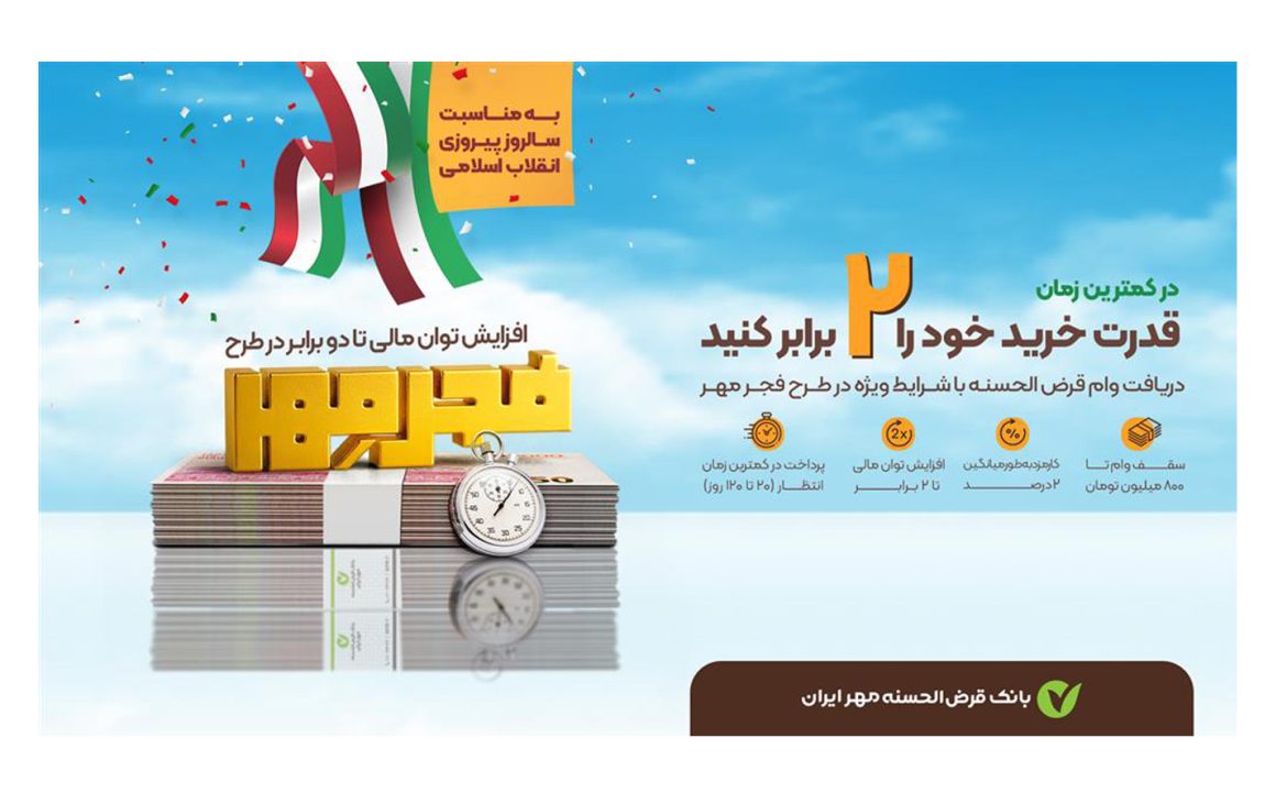 بانک قرضالحسنه مهر ایران به مناسبت ولادت حضرت علی(ع)، طرح «فجر مهر» را ارائه کرده که تا ۲۲ بهمن هم ادامه خواهد داشت.
