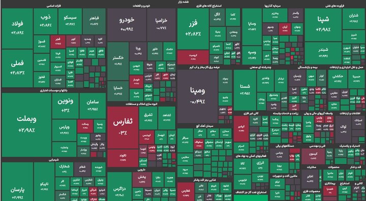 شاخص کل بورس با ۱۴ هزار و ۶۷۳ واحد ریزش در نقطه ۲ میلیون و ۸۰۰ هزار و ۹۶۷ واحدی قرار گرفت. شاخص هموزن بورس نیز با ریزشی ۰.۴۵ درصدی در نقطه ۸۸۷ هزار و ۴۵۴ واحدی ایستاد و ۶۹ درصد از نمادهای امروز بازار سرمایه منفی بودند.