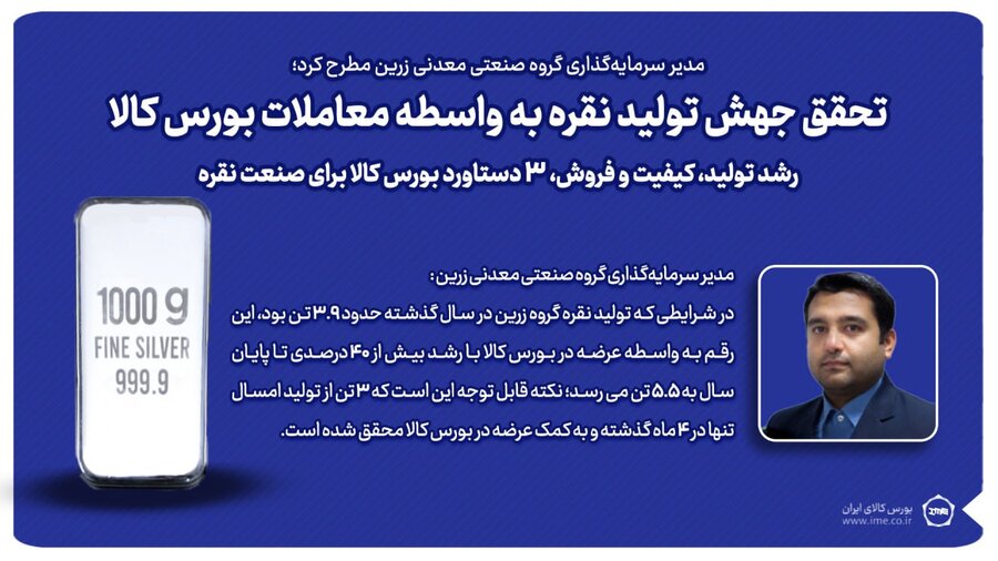 مدیر سرمایه‌گذاری گروه صنعتی معدنی زرین مطرح کرد؛ رشد تولید، کیفیت و فروش، ۳ دستاورد بورس کالا برای صنعت نقره