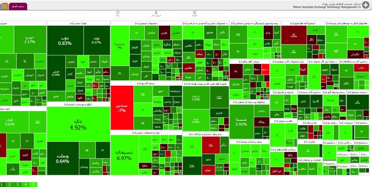 ارزش بازار در بورس تهران به بیش از 7 میلیون و 57 هزار میلیارد تومان رسید. معاملهگران امروز بیش از 4.9 میلیارد سهام و اوراق مالی در قالب 259 هزار نوبت معامله و به ارزش 3004 میلیارد تومان داد و ستد کردند.