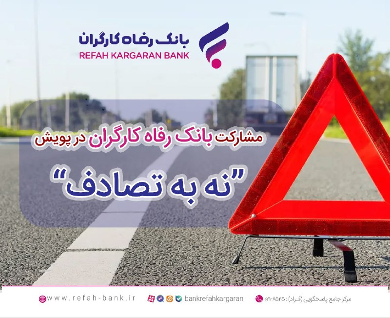 بانک رفاه کارگران در راستای ایفای نقش اثربخش در حوزه مسئولیتهای اجتماعی در این پویش مشارکت دارد و از ظرفیتهای اطلاعرسانی خود در مسیر آگاهیبخشی به آحاد جامعه به منظور کاهش تصادفات و پیشگیری از مرگهای جادهای گام برمیدارد.