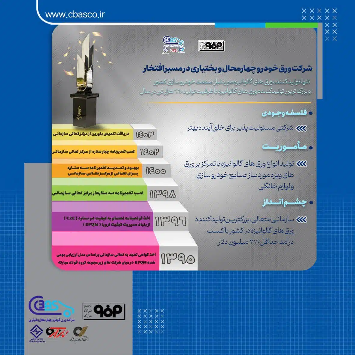 این شرکت دارای دو خط تولید ورق گالوانیزه خودرویی و صنعتی (لوازم خانگی) با ظرفیت تولید سالیانه ۶۶۰ هزار تن و دارای بیش از 50 درصد سهم بازار ورق گالوانیزه در کشور است و قابلیت تولید 21 گرید محصول ورق گالوانیزه و TOC دارد.