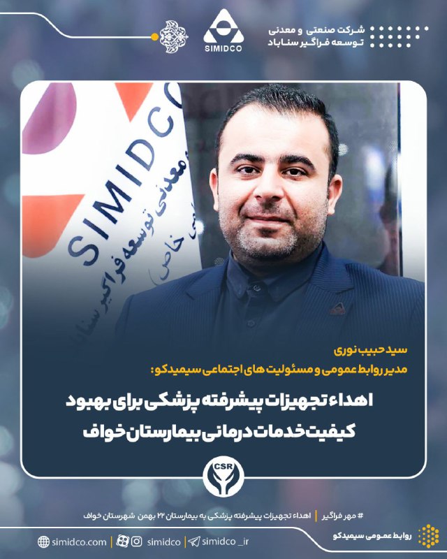 به گزارش روابط‌عمومی سیمیدکو، سید حبیب نوری مدیر روابط عمومی و مسئولیت‌های اجتماعی شرکت صنعتی و معدنی توسعه فراگیر سناباد، ضمن اعلام این خبر اظهار داشت: «سیمیدکو با رویکرد مسئولانه نسبت به جامعه و با هدف ارتقای سطح خدمات بهداشتی و درمانی در شهرستان خواف، اقدام به اهدای این تجهیزات پزشکی نموده است.»