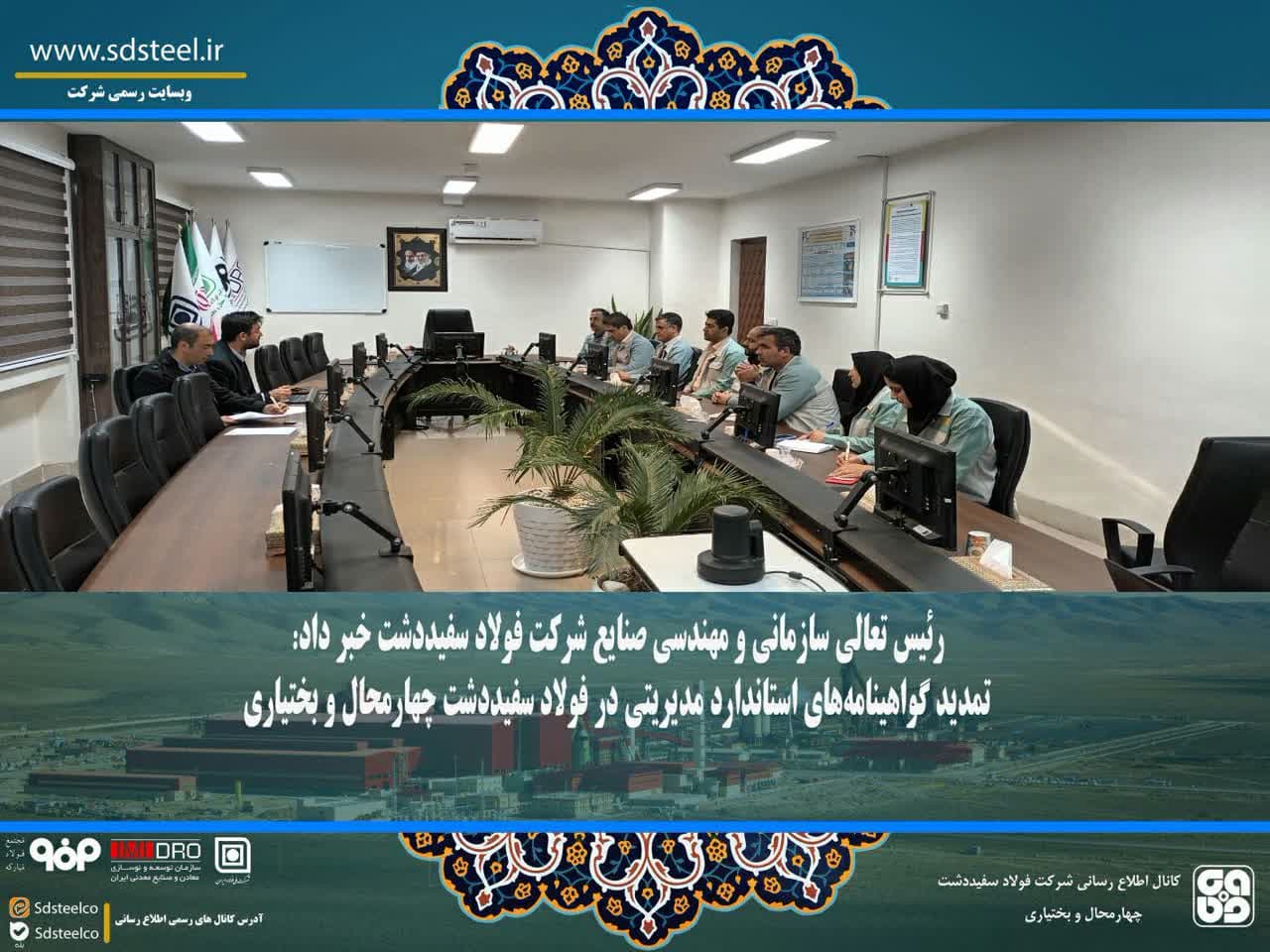بـه گــزارش روابــط عمومــی شــرکت فــولاد سفیددشــت، گواهینامههای مذکــور با همکاری و همدلــی تمامی واحدهای ســازمانی و بــا برگــزاری موفقیت آمیــز جلســات ممیــزی گواهینامههای مذکور تمدید شد.