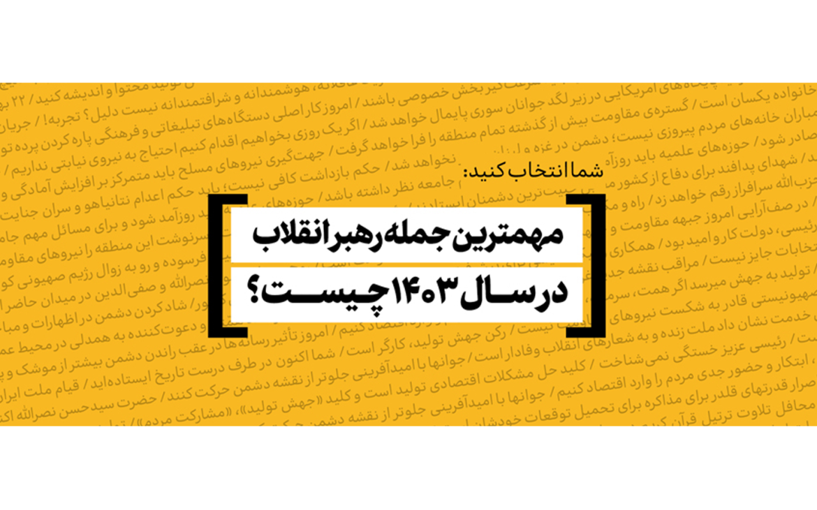 به نظر شما مهمترین و بهیادماندنیترین جملهی حضرت آیتالله خامنهای در سال ۱۴۰۳ کدام جمله است؟ لطفاً نظرات خود را از طریق همین صفحه ارسال کنید.
