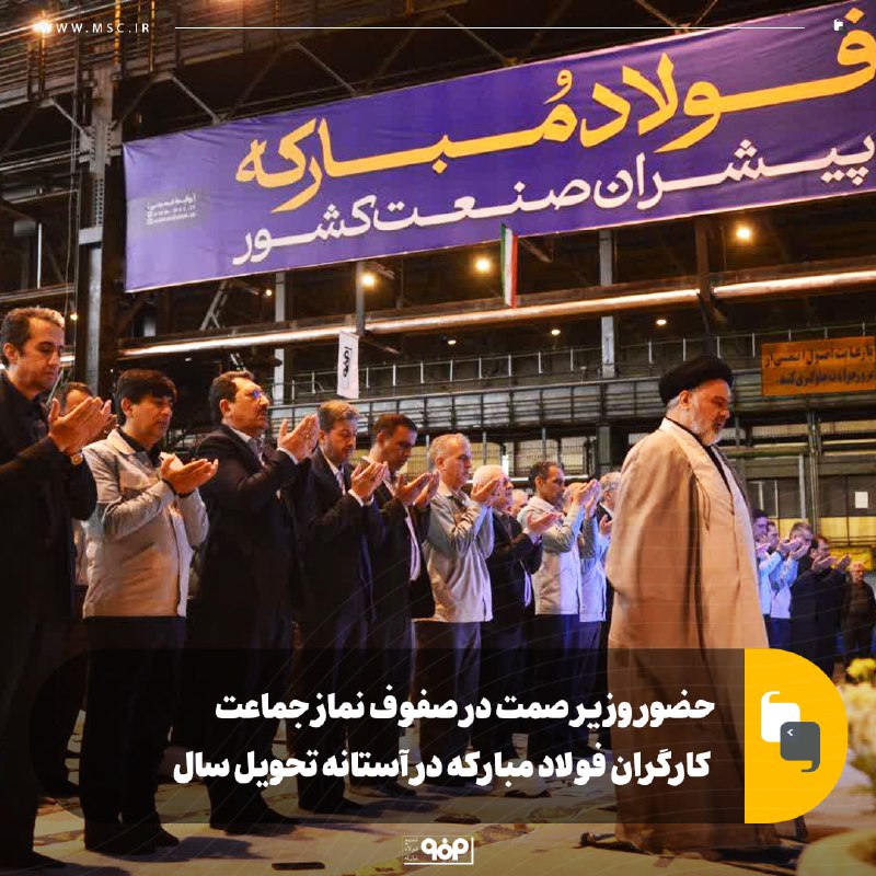 وزیر صمت قرار است، پس از اقامه نماز جماعت در واحد برش سبک و سنگین ناحیه نورد سرد این شرکت، با حضور در مراسم تحویل سال نو در همان محل، دعای تحویل سال را در کنار کارگران زحمتکش قلب تپنده صنعت فولاد کشور قرائت کند.