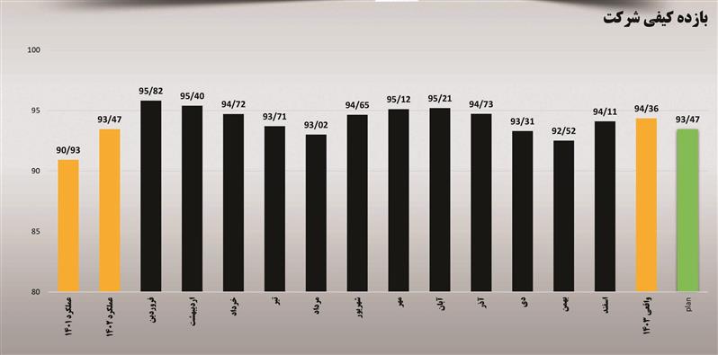 - افزایش بازده کیفی ناحیه: بازده کیفی در سال 1403 برابر با 97.41 درصد بوده که 0.07 درصد بیشتر از بازده کیفی سال 1402 است.