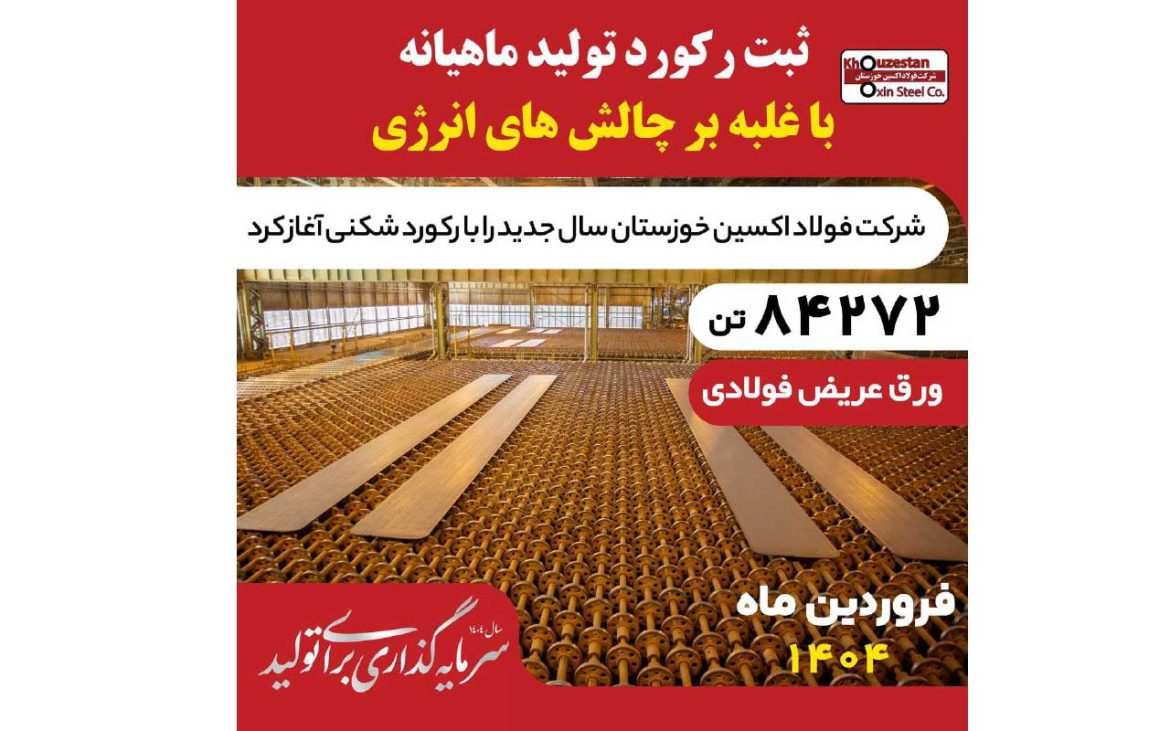 شرکت فولاد اکسین خوزستان در فروردین ۱۴۰۴ با تولید ۸۴,۲۷۲ تن اسلب، موفق به ثبت رکورد تازهای در تولید ماهانه شد و رکورد پیشین خود را شکست. این موفقیت در شرایط دشوار تأمین انرژی و ناترازیهای ماههای اخیر، بهدست آمد و حاصل برنامهریزی دقیق و تلاش نیروهای بومی و متخصص شرکت بود.