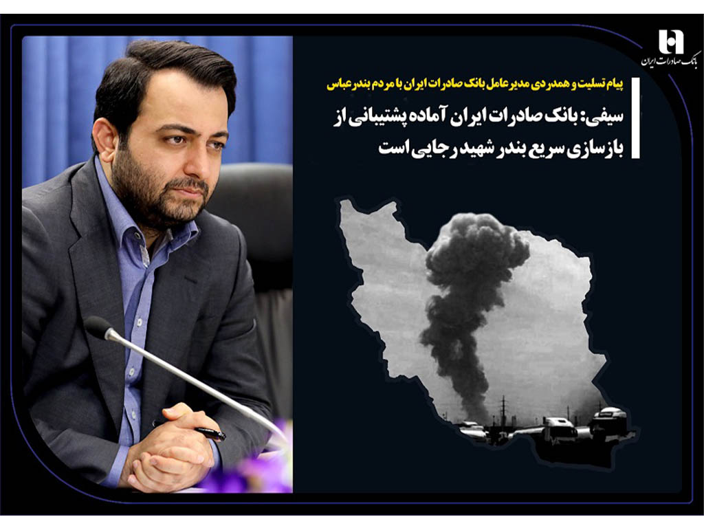 محسن سیفی در این پیام تأکید کرد: بانک صادرات ایران در استان هرمزگان و در سطح ملی آماده پشتیبانی از بازسازی سریع بندر شهید رجایی است.