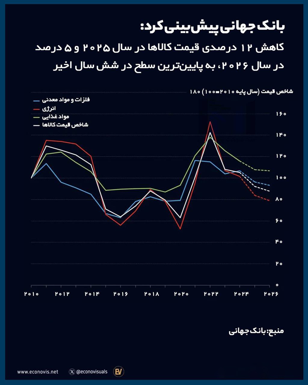 *پیشبینی کاهش قابلتوجه قیمت کالاها در افق ۲۰۲۵ و ۲۰۲۶