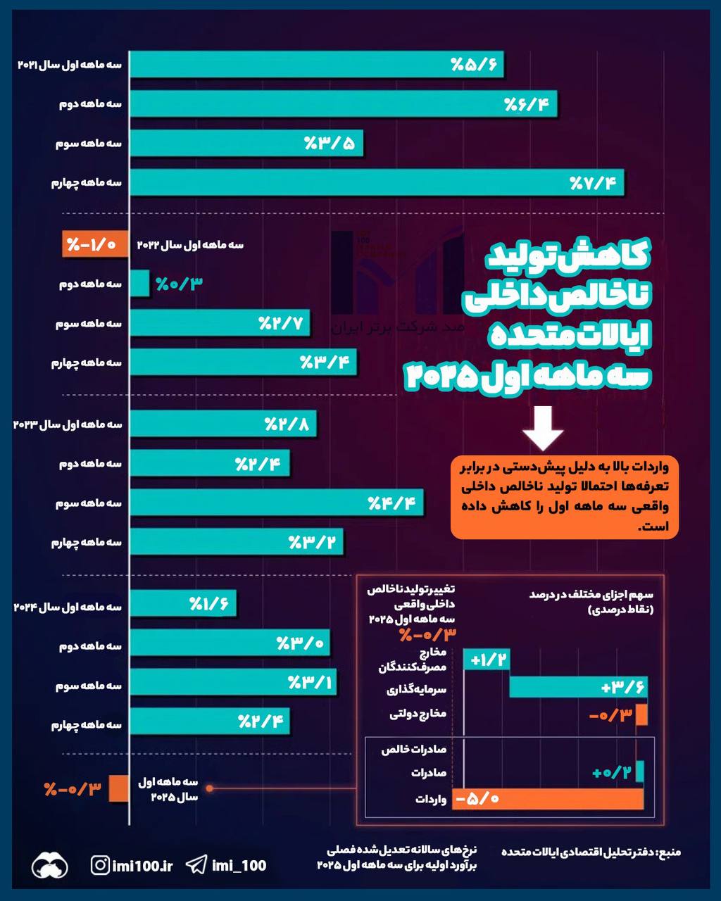 کاهش ۰/۳ درصدی تولید ناخالص داخلی آمریکا در سه‌ماهه اول ۲۰۲۵؛ اولین کاهش از سال ۲۰۲۲ /کاهش رشد اقتصادی؛ افتی غیرمنتظره در ابتدای سال ۲۰۲۵