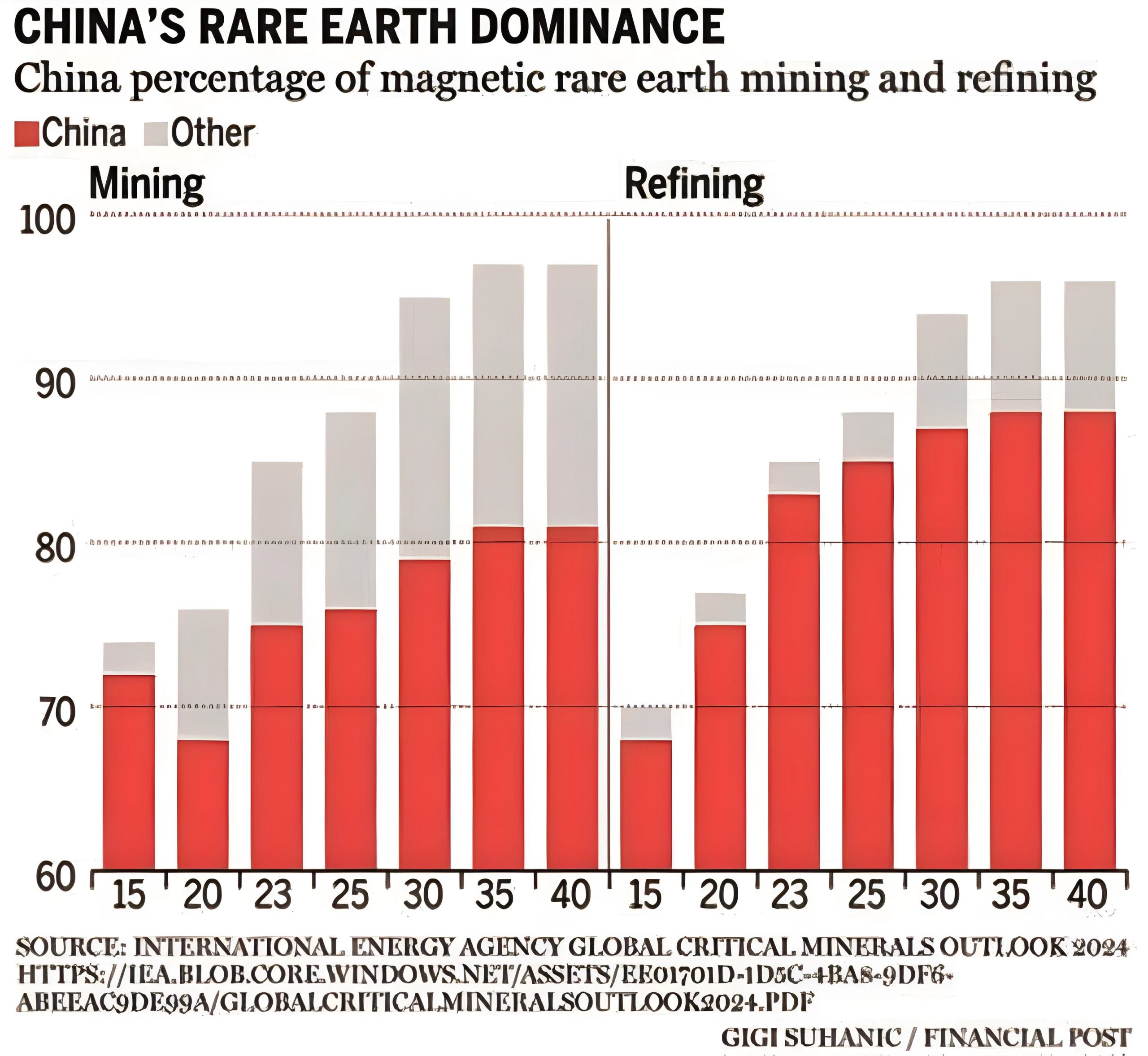 عناصر خاکی کمیاب به‌عنوان ستون تولید بسیاری از فناوری‌های مدرن، صنعتی و دفاعی شناخته می‌شوند. تسلط چین بر استخراج و پالایش این عناصر، با سهم 70 درصدی در تولید جهانی و 89 درصدی در پالایش نئودیمیم و پراسئودیمیم، نقشی کلیدی در خلق وابستگی سایر کشورها داشته است. این انحصار نه‌تنها قدرت اقتصادی چین را تقویت کرده، بلکه به‌عنوان ابزاری سیاسی در دوره‌های تنش دیپلماتیک مورد استفاده قرار گرفته است. داده‌ها نشان می‌دهد چین همچنان نقش تعیین‌کننده‌ای در بازار جهانی عناصر خاکی کمیاب دارد، به‌طوری‌که صادرات این مواد در یازده ماه نخست سال 2023 رشد 10 درصدی داشته است.