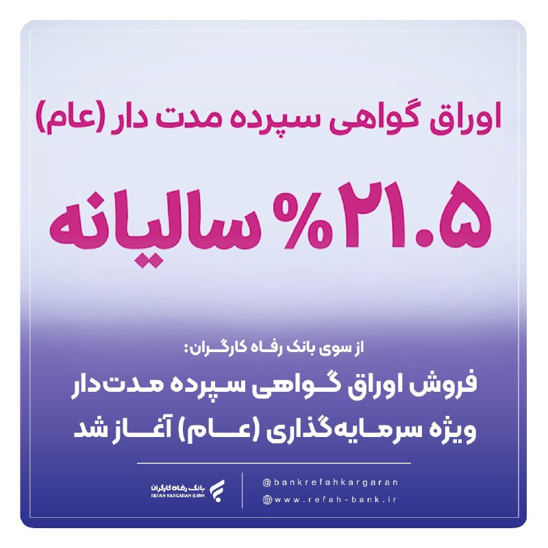 بانک رفاه کارگران فرآیند فروش اوراق گواهی سپرده مدتدار ویژه سرمایهگذاری (عام) را آغاز کرده است. این اوراق که معاف از مالیات هستند، با نام و با سررسید یکساله تا تاریخ ۲۷ اردیبهشت ۱۴۰۵ عرضه میگردد و فرصت تازهای برای سرمایهگذاران فراهم آورده است.