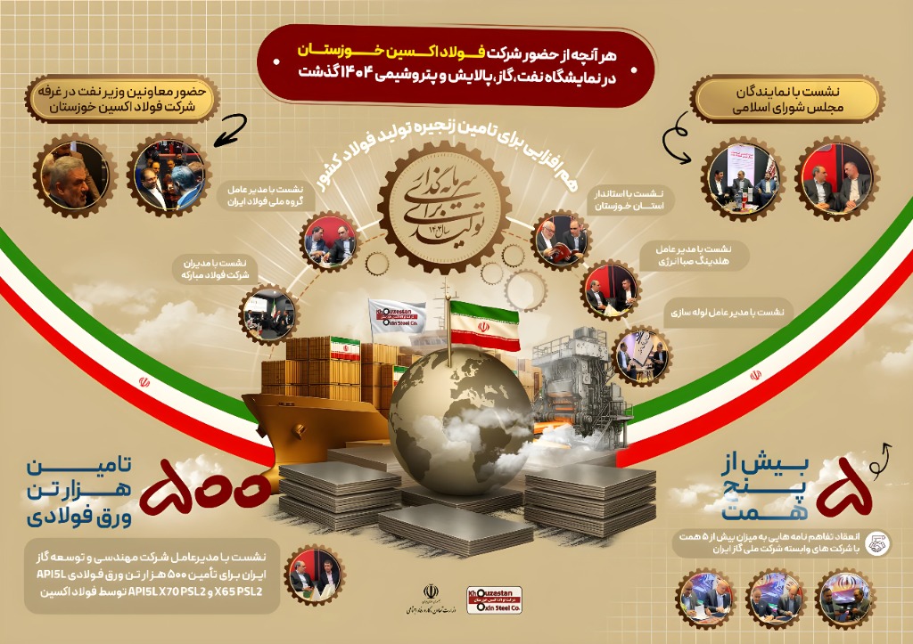 شرکت فولاد اکسین خوزستان با حضور پررنگ و مؤثر در نمایشگاه بینالمللی نفت، گاز، پالایش و پتروشیمی ایران 1404، توانست با ارائه توانمندیهای تخصصی، محصولات ویژه صنایع نفت و گاز، و معرفی پروژههای کلیدی خود، توجه کارشناسان و رسانهها را به خود جلب کند.