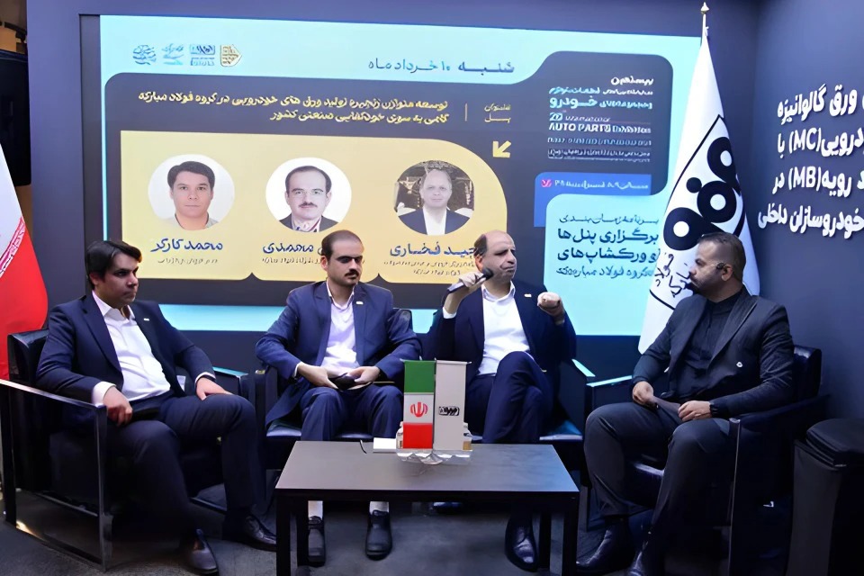 پنل تخصصی توسعه متوازن زنجیره تولید ورقهای خودرویی در گروه فولاد مبارکه گامی به سوی خودکفایی صنعتی کشور در بیستمین نمایشگاه بینالمللی قطعات، لوازم و مجموعههای خودرو برگزار شد. این رویداد مهم با حضور مجید فخاری مدیر برنامهریزی فروش و حمل محصولات شرکت فولاد مبارکه، کارگر مدیر فروش شرکت ورق خودرو چهارمحال و بختیاری و محسن محمدی کارشناس متالوژی شرکت فولاد مبارکه در غرفه فولاد مبارکه برگزار شد. این پنل فرصتی مناسب برای بررسی دستاوردها و برنامههای آینده گروه فولاد مبارکه در حوزه تولید ورقهای خودرویی فراهم کرد.