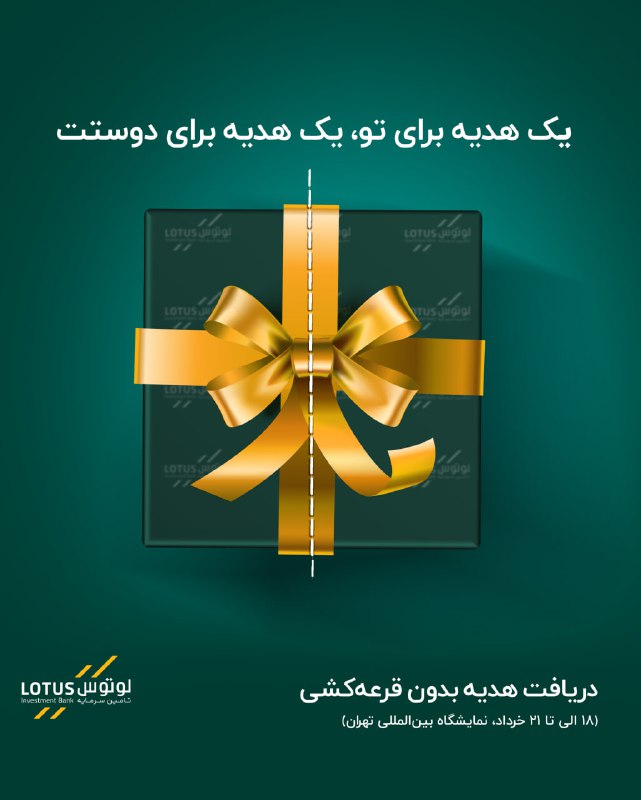 یکی از جذابیتهای حضور تأمین سرمایه لوتوس در این دوره از نمایشگاه ایرانهلث، ارائه هدیهای ویژه به تمامی افرادی است که از غرفه این شرکت بازدید میکنند. این هدایا که با شعار “یک هدیه برای شما، یک هدیه برای همراهتان!” معرفی شده، بدون نیاز به شرکت در قرعهکشی، به همه بازدیدکنندگان تقدیم خواهد شد. ارزش این هدایای غافلگیرکننده از ۱۰۰ هزار تومان آغاز شده و تا سقف ۵ میلیون تومان متغیر خواهد بود، که نشان از قدردانی این شرکت از حضور بازدیدکنندگان دارد.