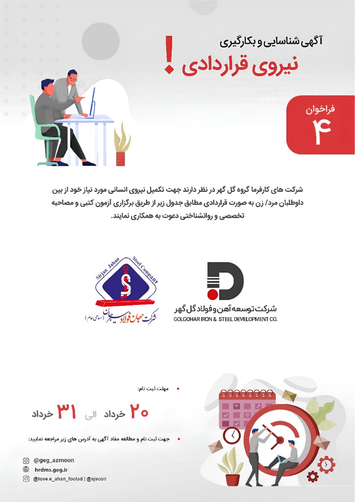 شرکت جهان فولاد سیرجان و شرکت توسعه آهن و فولاد گل گهر، دو مجموعه بزرگ و فعال در صنعت فولاد کشور، فراخوان جدیدی را برای شناسایی و بکارگیری نیروی انسانی متخصص منتشر کرده‌اند. این شرکت‌ها که از زیرمجموعه‌های اصلی کارفرمای گروه گل گهر محسوب می‌شوند، برنامه‌ای جدی برای تکمیل کادر خود دارند. این اقدام فرصت شغلی مهمی برای متخصصان در یکی از استراتژیک‌ترین مناطق صنعتی ایران فراهم می‌کند.