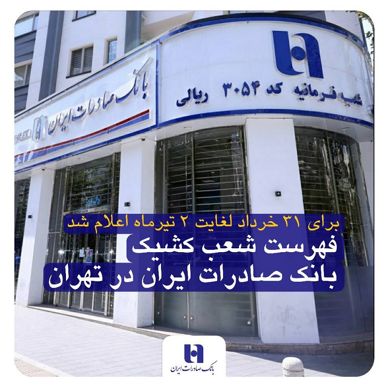 جزئیات فعالیت شعب بانک صادرات ایران در تهران