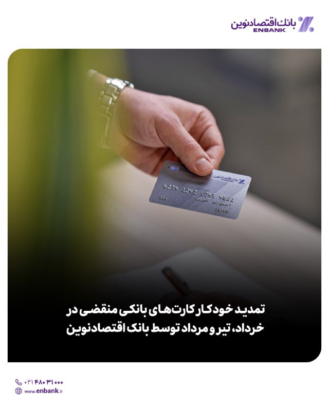 بانک اقتصادنوین در اقدامی برای افزایش رضایتمندی مشتریان، طرح تمدید خودکار کارتهای بانکی را اجرایی کرد. بر اساس این طرح، کارتهای بانکی که تاریخ انقضای آنها در ماههای آینده قرار دارد، بدون نیاز به اقدام از سوی مشتری، تمدید میشوند. این خبر توسط روابط عمومی بانک اقتصادنوین به صورت رسمی اعلام شده است.