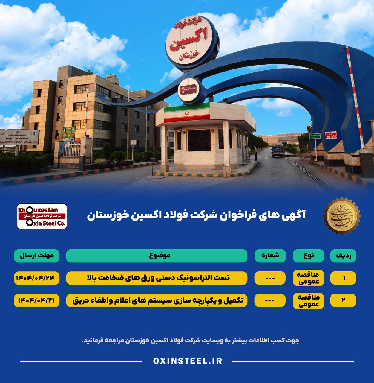 مناقصات اعلام شده از سوی فولاد اکسین خوزستان به شرح زیر است: