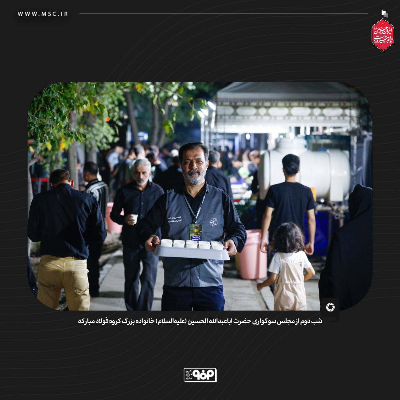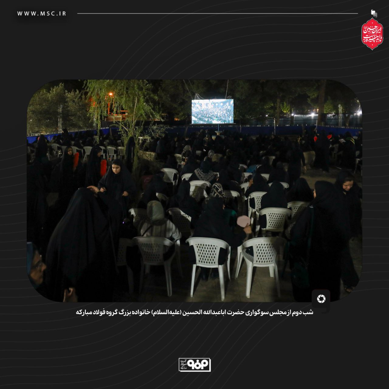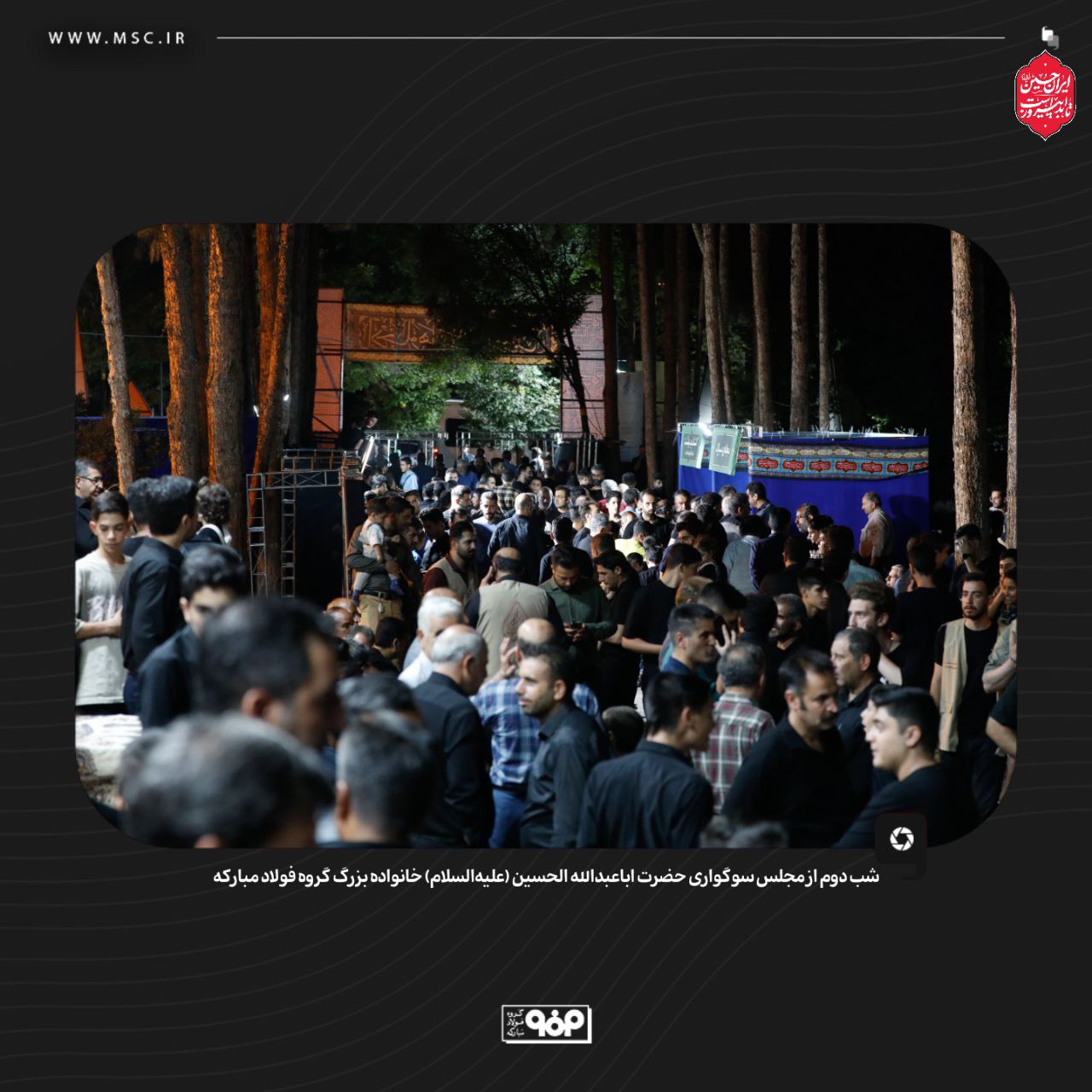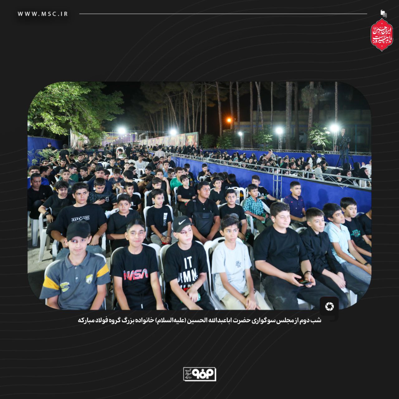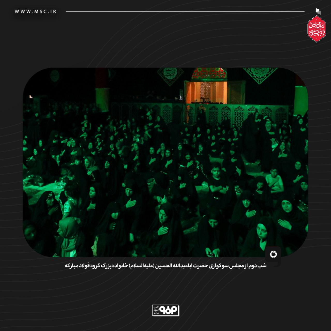 گروه فولاد مبارکه دومین شب از مجلس سوگواری سالار شهیدان، حضرت اباعبدالله الحسین (ع)، را برگزار کرد. این مراسم با حضور گسترده و پرشور خانواده بزرگ این مجموعه صنعتی همراه بود. این رویداد معنوی، بخشی از برنامه‌های فرهنگی و مذهبی این شرکت محسوب می‌شود.