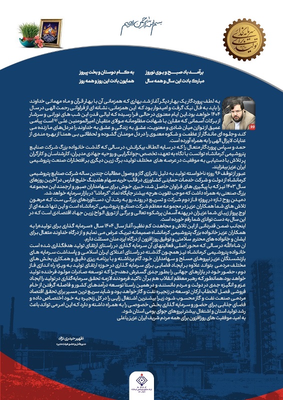 تبریک نوروز و قدردانی از خانواده پتروشیمی کرمانشاه