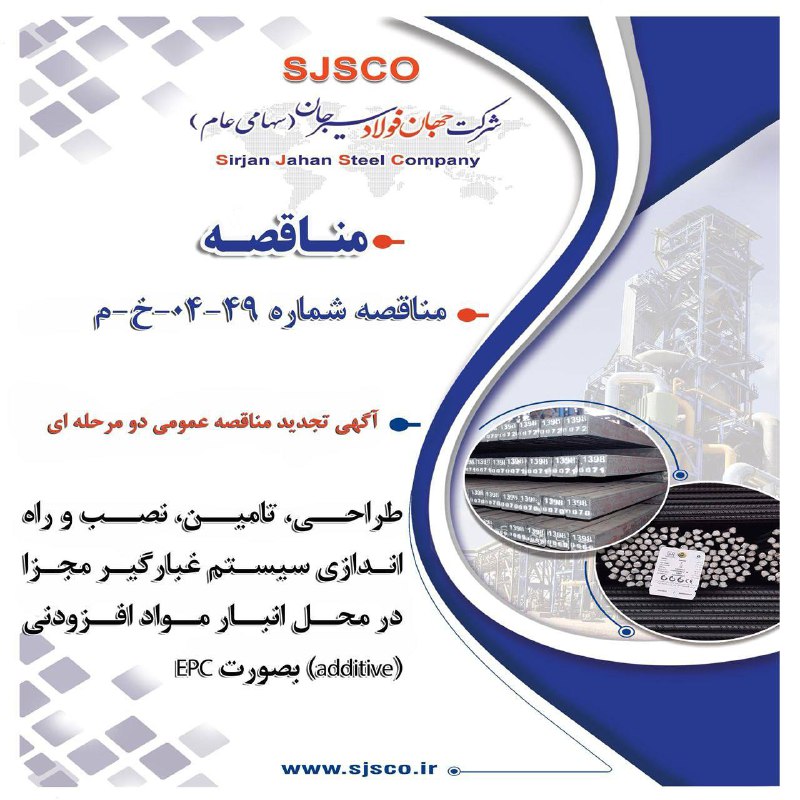 شرکت جهان فولاد سیرجان قصد دارد پروژه مهمی را به مناقصه بگذارد. این پروژه شامل طراحی، تامین تجهیزات، نصب و راهاندازی کامل یک سیستم غبارگیر مجزا است. محل اجرای این طرح در انبار مواد افزودنی (additive) کارخانه خواهد بود. فرآیند واگذاری این پروژه از طریق یک مناقصه عمومی دو مرحلهای و به روش EPC صورت میپذیرد.