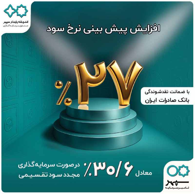 صندوق سرمایهگذاری با درآمد ثابت «اندوخته پایدار سپهر» از افزایش نرخ بازدهی پیشبینی شده خود خبر داد. بر اساس اعلام رسمی، بازدهی سالانه جدید این صندوق به ۲۷ درصد افزایش یافته است. این اقدام با هدف تقویت جایگاه رقابتی صندوق و ارائه گزینهای جذابتر برای سرمایهگذاران انجام میشود. این تصمیم در جهت حفظ و افزایش ارزش داراییهای مشتریان در شرایط اقتصادی کنونی اتخاذ شده است. این صندوق میکوشد تا سهم بیشتری از نقدینگی سرگردان در بازار را به خود جذب نماید.