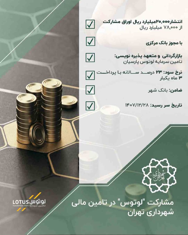 مشارکت تأمین سرمایه لوتوس پارسیان در این پروژه، نمونهای موفق از بهکارگیری ظرفیتهای بازار سرمایه برای تامین مالی پروژههای کلان شهری است. تخصیص 20,000 میلیارد ریال توسط این شرکت، که معادل 25 درصد از کل پروژه است، توانمندی و اعتبار بالای آن را در بازار مالی کشور نشان میدهد. این اقدام نه تنها به تسریع توسعه زیرساختهای حیاتی مانند مترو تهران کمک میکند، بلکه اعتماد به ابزارهای نوین مالی را برای تحقق اهداف عمرانی تقویت مینماید. راهبری سندیکای پذیرهنویسی توسط لوتوس، بیانگر نقش استراتژیک این نهاد مالی در اتصال پروژههای عمومی به منابع سرمایهگذاران است.