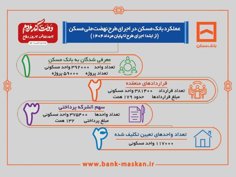 گزارش عملکرد بانک مسکن تا پایان مرداد ۱۴۰۴، تصویری روشن از مقیاس عظیم تعهدات مالی این بانک در طرح نهضت ملی مسکن ارائه می‌دهد. تزریق ۱۳۲ همت نقدینگی و انعقاد قراردادهایی به ارزش ۱۷۹ همت، بانک مسکن را به عنوان بازوی اصلی تأمین مالی این ابرپروژه ملی تثبیت می‌کند. تفاوت اندک میان تعداد واحدهای دارای قرارداد (۳۸۱,۴۰۰) و واحدهای دریافت‌کننده وجه (۳۷۵,۴۰۰) نشان‌دهنده سرعت بالای بانک در پرداخت تسهیلات پس از عقد قرارداد است. این آمار نشان می‌دهد که بانک مسکن نه تنها در تعریف منابع موفق عمل کرده، بلکه در تخصیص و پرداخت آن به پروژه‌ها نیز از کارایی بالایی برخوردار است که برای حفظ شتاب ساخت و ساز ضروری است.