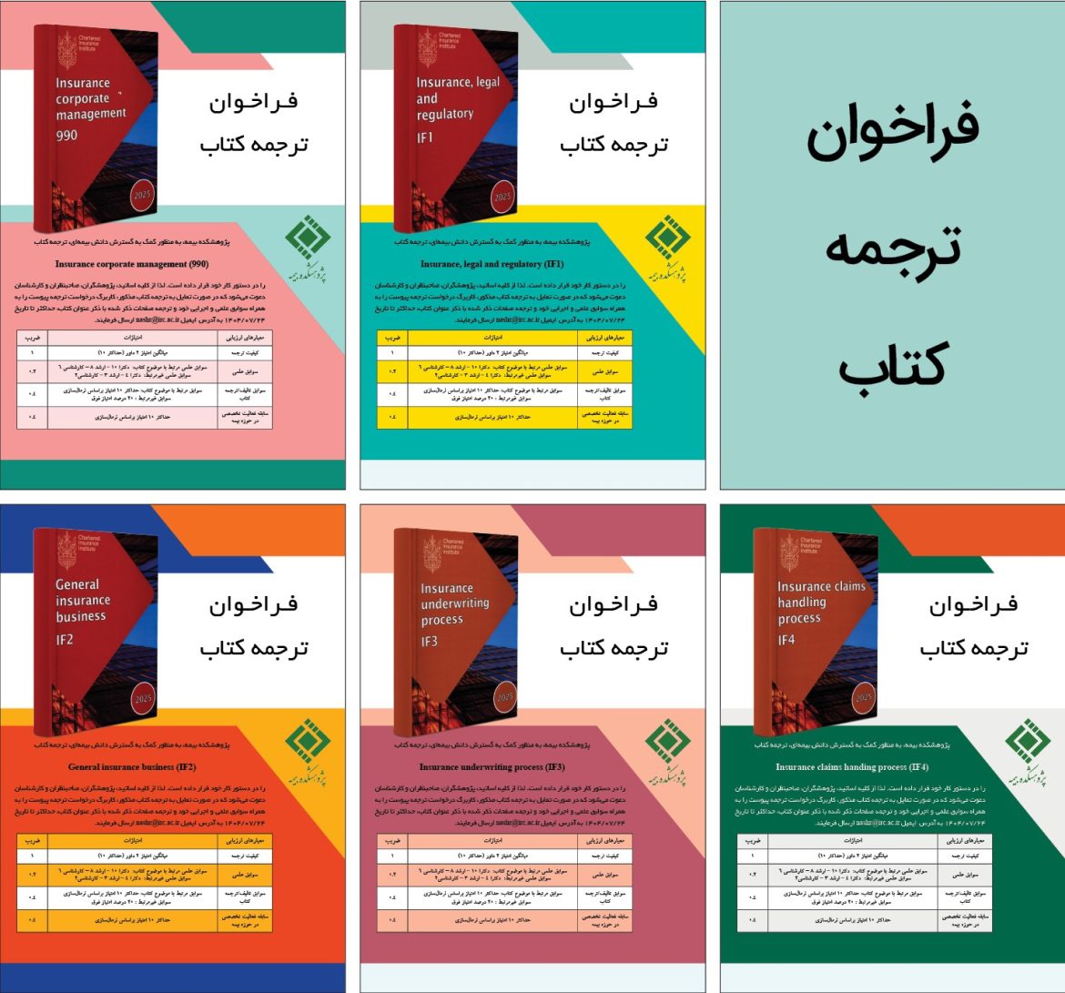 پژوهشکده بیمه 5 عنوان از مهمترین کتابهای موسسه بیمه چارتر لندن را برای این پروژه انتخاب کرده است. این عناوین، حوزههای حیاتی صنعت بیمه را پوشش میدهند و به شرح زیر هستند:
