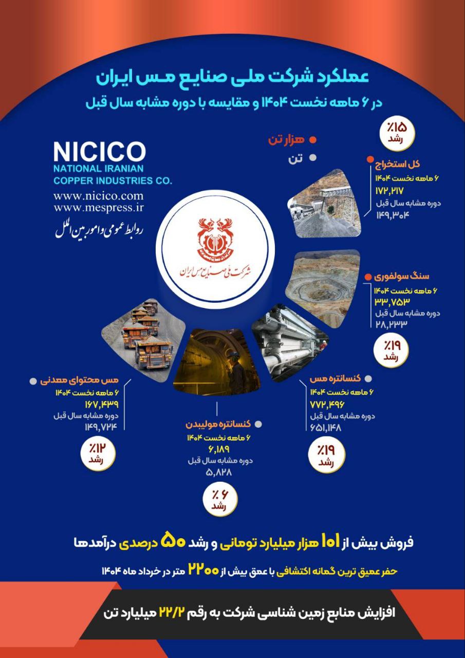 شرکت ملی صنایع مس ایران در گزارش عملکرد 6 ماهه نخست سال 1404، از رشد چشمگیر در تمام شاخص‌های اصلی خبر داد. درآمدهای این شرکت با جهش 50 درصدی به بیش از 101 هزار میلیارد تومان رسید. همزمان، تولید کنسانتره مس با افزایش 19 درصدی، از مرز 772 هزار تن عبور کرد. این موفقیت‌ها در کنار افزایش استراتژیک منابع زمین‌شناسی شرکت به رقم 22.2 میلیارد تن، نشان از عملکردی جامع و پایدار دارد.