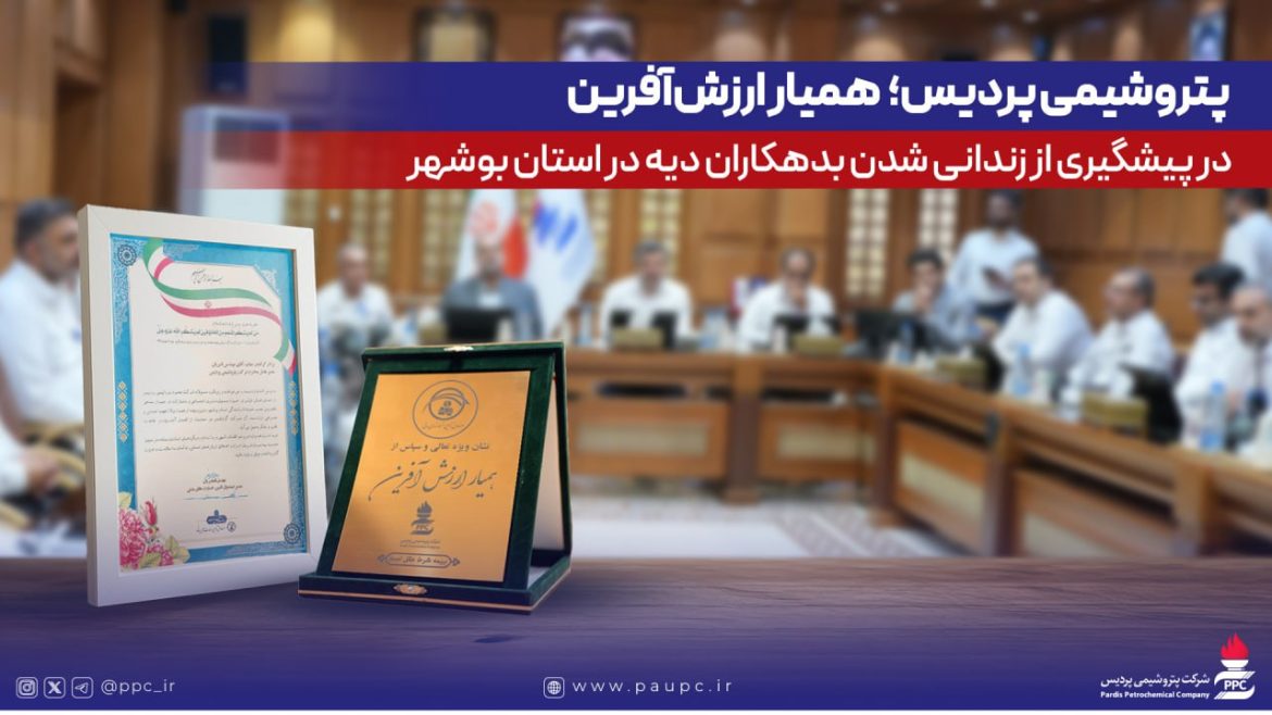 صندوق تأمین خسارتهای بدنی کشور از پتروشیمی پردیس با اهدای نشان «همیار ارزشآفرین» تقدیر کرد. این تقدیر به دلیل مشارکت این شرکت در پرداخت بدهی دیه 60 نفر از مقصران حوادث رانندگی در استان بوشهر صورت گرفت. با این همکاری، بدهی بیش از 1 میلیارد و 200 میلیون تومانی این افراد تسویه و از زندانیشدن آنها جلوگیری شد. این طرح به عنوان الگویی موفق در حوزه مسئولیتهای اجتماعی معرفی شده است.