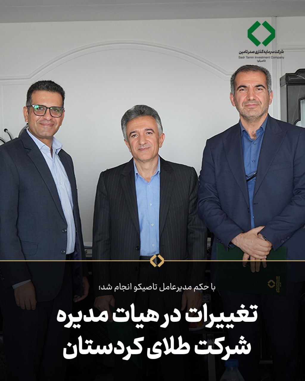 شرکت سرمایهگذاری صدر تامین (تاصیکو) با صدور احکامی از سوی مدیرعامل، ترکیب هیات مدیره شرکت توسعه معادن طلای کردستان را تغییر داد. بر این اساس، حسین فیروزی، دارای دکتری روابط بینالملل و سوابق مدیریتی دولتی، به همراه بهزاد اللهیاری، فارغالتحصیل مهندسی صنایع از دانشگاه صنعتی شریف و با سابقه مدیریت در شرکتهای بزرگ صنعتی، به عنوان اعضای جدید هیات مدیره این شرکت منصوب شدند. این انتصابات با هدف تقویت راهبردی این مجموعه معدنی انجام شده است.