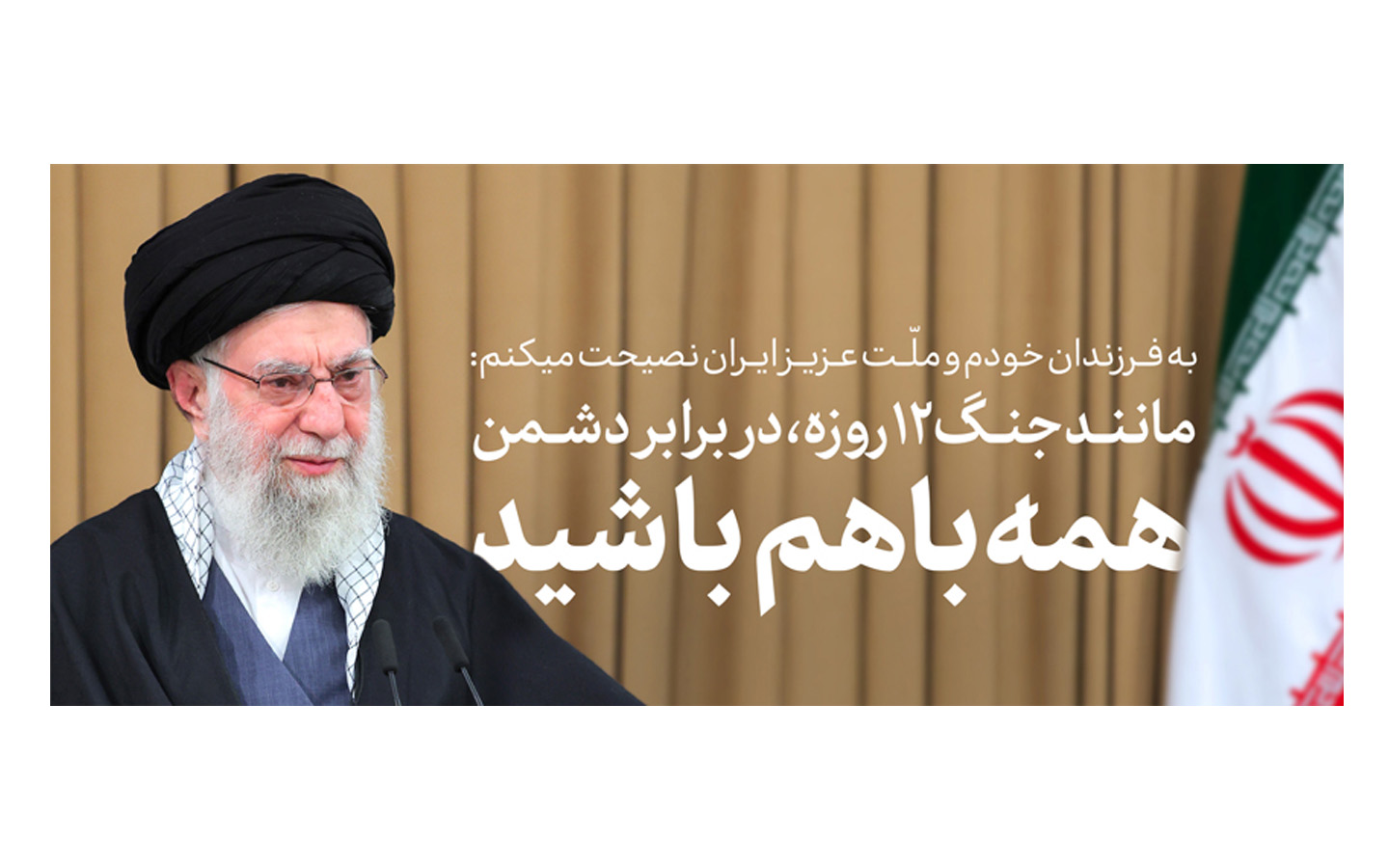 حضرت آیت‌الله خامنه‌ای رهبر معظم انقلاب اسلامی امشب در سخنانی تلویزیونی خطاب به ملت عزیز ایران، با تاکید بر ضرورت تقویت و استمرار قدرتمندانه بسیج در نسل‌های پی در پی به‌عنوان «یک ثروت بزرگ، حرکت همگانی و عامل افزایش قدرت ملی»، ناکامی آمریکا و رژیم صهیونیستی را در تحقق هیچ یک از اهداف حمله به ایران، نشانه شکست بدون تردید آنها خواندند و با بیان چند توصیه به ملت، همه مردم و جناح‌های سیاسی را به حفظ و تقویت اتحاد ملی فراخواندند.