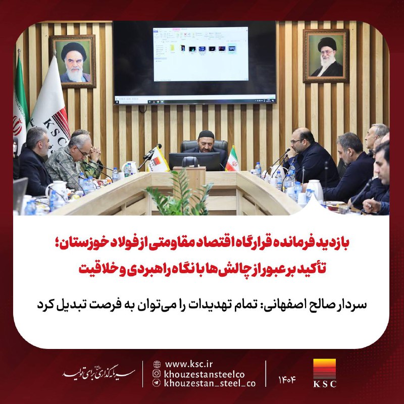 سردار صالح اصفهانی، فرمانده قرارگاه اقتصاد مقاومتی، در بازدید از شرکت فولاد خوزستان، بر لزوم طراحی سناریوهای عملیاتی برای بدترین شرایط ممکن، نظیر قطع کامل حاملهای انرژی، تأکید کرد. امین ابراهیمی، مدیرعامل شرکت، در این دیدار از اجرای 149 طرح توسعهای و خودکفایی 73 درصدی در تولید برق خبر داد که با محدودیتهای شبکه سراسری مواجه است. محور اصلی این نشست، تغییر نگرش مدیریتی از وضعیت عادی به شرایط جنگ اقتصادی و تبدیل تهدید ناترازیها به فرصتهای نوین با بازنگری در سبد فعالیتها بود.