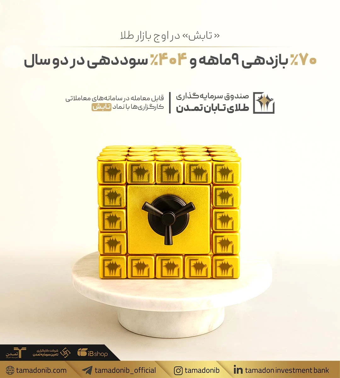 صندوق سرمایه‌گذاری طلای تابان تمدن با نماد «تابش» در ۹ ماهه نخست سال ۱۴۰۴ موفق به ثبت بازدهی خیره‌کننده 70 درصدی شده است. این عملکرد درخشان، صندوق را بالاتر از بازارهای موازی نظیر سکه امامی با 46 درصد و دلار با 34 درصد رشد قرار می‌دهد. سود تجمیعی این ابزار مالی از ابتدای فعالیت تاکنون به رقم 404 درصد رسیده است. مدیریت حرفه‌ای و نقدشوندگی بالا حتی در روزهای نزولی بازار، مزیت اصلی این صندوق نسبت به خرید فیزیکی طلا محسوب می‌شود.