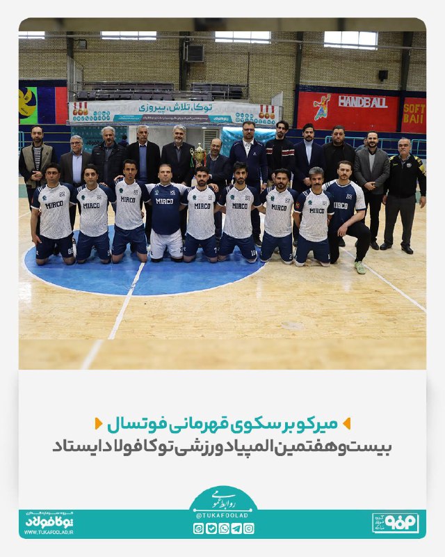 پرونده رقابتهای پرشور بیستوهفتمین دوره از المپیاد ورزشی گروه سرمایهگذاری توکا فولاد، سرانجام با درخشش و قهرمانی مقتدرانه تیم فوتسال شرکت میرکو بسته شد. این دوره از مسابقات که در بهمنماه سال 1403 برگزار گردید، شاهد حضور پررنگ مدیرعامل هلدینگ و جمعی از مدیران ارشد شرکتهای تابعه بود که شور و هیجان خاصی به فضای مسابقات بخشید. در جدول ردهبندی نهایی این تورنمنت، پس از قهرمانی تیم میرکو، تیمهای فوتسال شرکت بهسازان صنایع خاورمیانه و شرکت حملونقل توکا توانستند با شایستگی عناوین دوم و سوم را کسب نمایند و بر سکوهای افتخار بایستند.