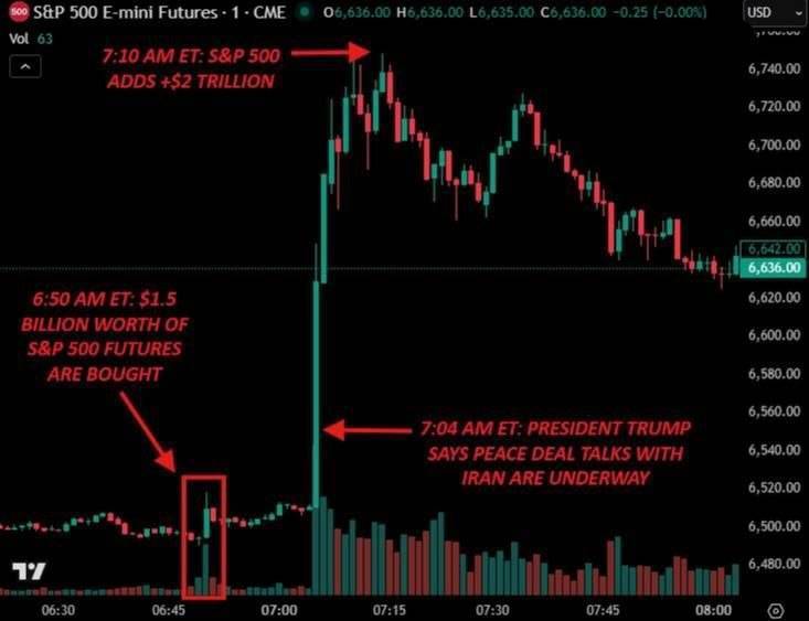 یک پیام از سوی ترامپ مبنی بر عقب‌نشینی از حمله به ایران، موجب تلاطم شدید در بازارهای جهانی سهام شد. این اتفاق تنها در چند دقیقه ارزش قراردادهای آتی شاخص S&P 500 را 2 تریلیون دلار افزایش داد. در پی این نوسان شدید، تیم والز، سیاستمدار آمریکایی، خواستار شفاف‌سازی شد. او درخواست کرد مشخص شود کدام مقامات پیش از انتشار این پیام، اقدام به معامله سهام کرده‌اند و از این اطلاعات سود برده‌اند.